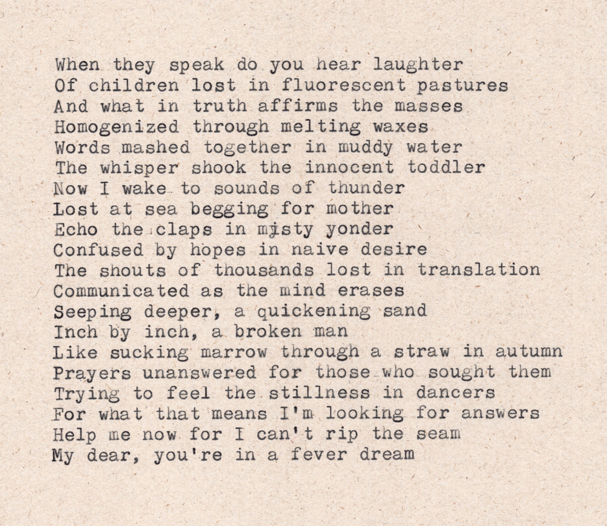 My intention is to give my audience a sense of real human connection, something that feels rich and organic.